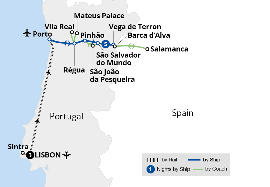 • Discover scenic Porto, golden Salamanca, and Lamego's Baroque architecture