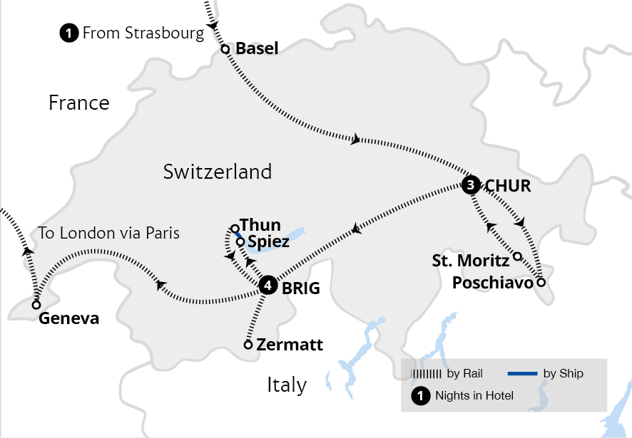 Experience epic mountain landscapes and shimmering alpine lakes on this fantastic holiday to Switzerland. Discover the Swiss Alps on the world-acclaimed Bernina Express and Glacier Express from our popular bases in Chur and Brig, traditional towns surrounded by snow-capped peaks. Enjoy a private aperitif on the terrace of the 10th-century Spiez...