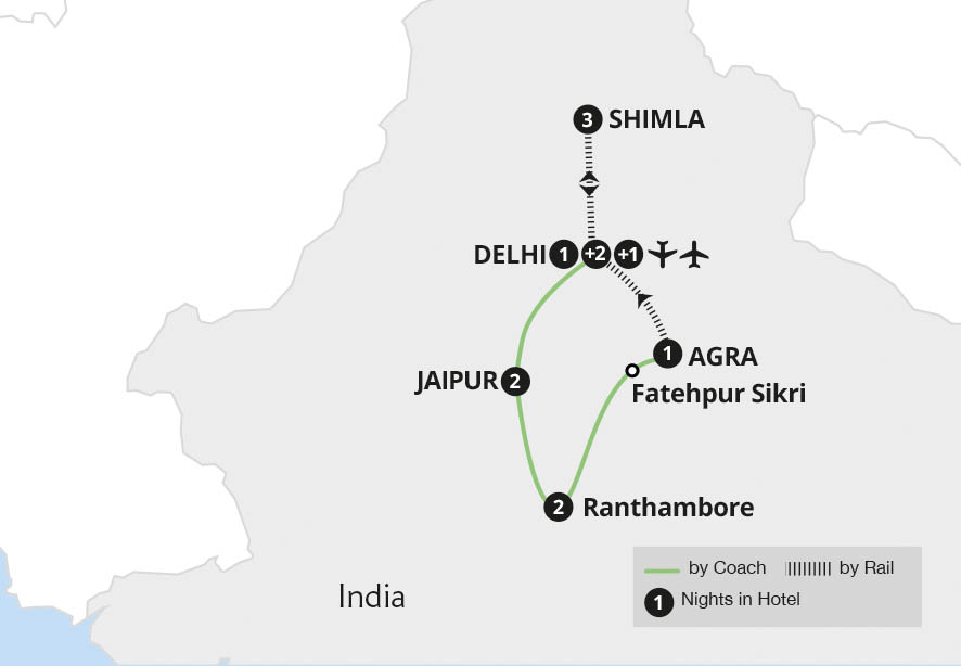 Follow in the footsteps of maharajas on our bestselling Indian tour, uncovering the gems of India's Golden Triangle and the former colonial retreat of Shimla. Embrace the many wonders of this mystical country on this unrivalled overland journey. Enjoy the bustle of Delhi's bazaars on a rickshaw ride, visit Shimla to uncover the former summer...