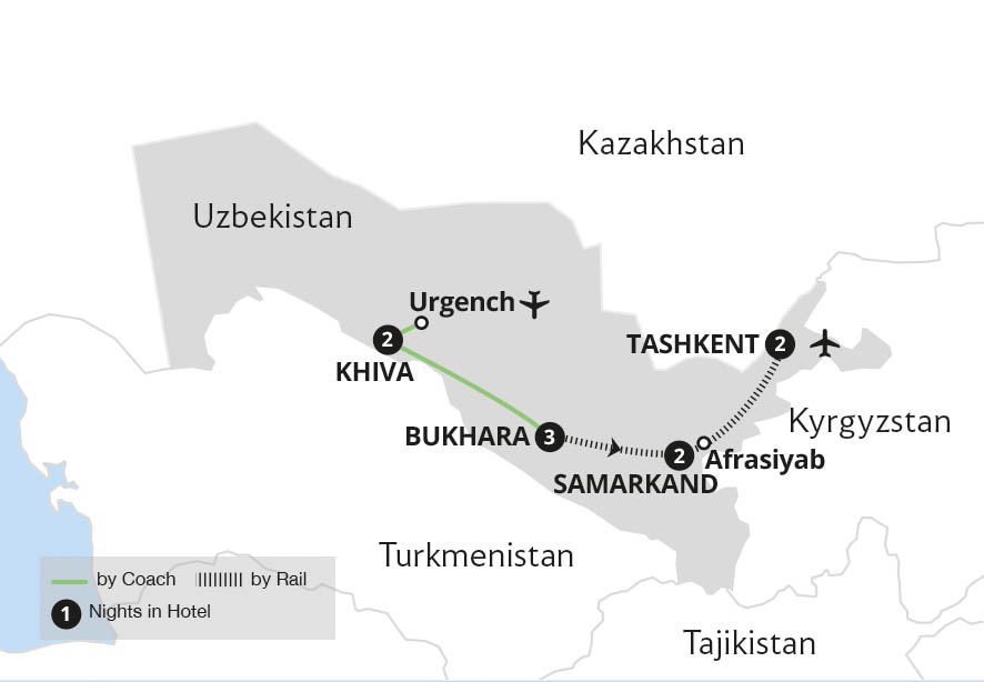Step back in time on an exploration of Uzbekistan, uncovering the central Asian country's blend of bewitching stories and intriguing landscapes. Explore ancient fortresses hidden in sandy deserts on a fascinating journey, conjuring up enduring images of traders on the golden road to Samarkand and its iconic Registan. Stroll among ...