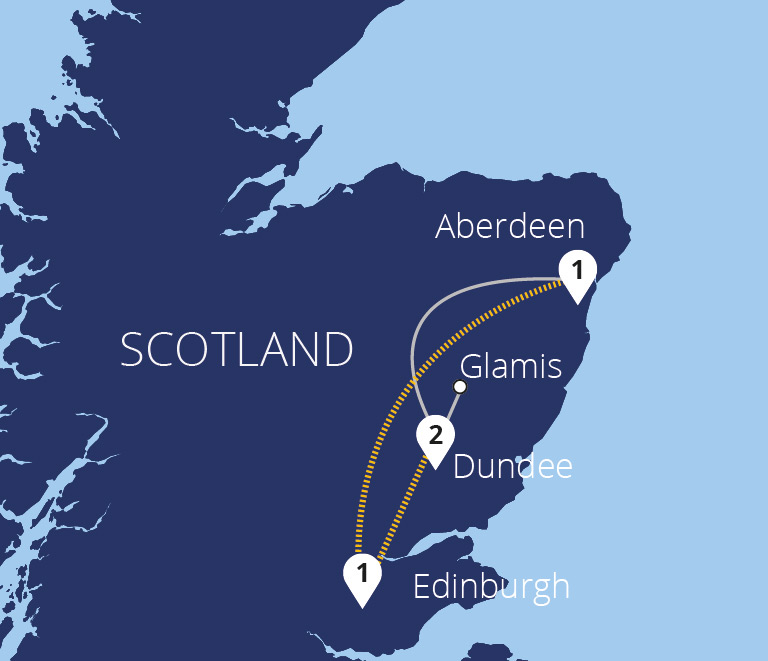We visit three of Scotland's most charismatic cities, experiencing the local culture of Edinburgh, Aberdeen and Dundee. Visit Glamis Castle and journey along the banks of the River Dee aboard the Royal Deeside Railway. This five-day holiday is scattered with unique excursions. Meet iconic Highland coos, savour the craft of gin at the Lost Loch...