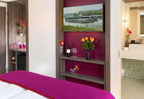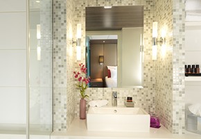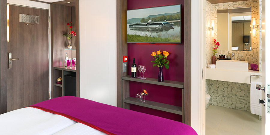 These en-suite cabins are stylish and impressively spacious at 17.5 squre metres, with a panoramic window balcony, walk-in wardrobe and seating area.