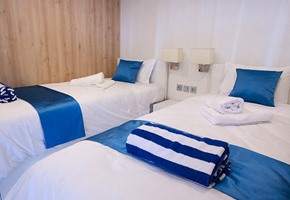 Cabins feature air-conditioning, a safe, an audio system, a wardrobe, desk, sofa, and a window. En-suite bathrooms include a shower and a hairdryer and beds can be configured to twins or a double.