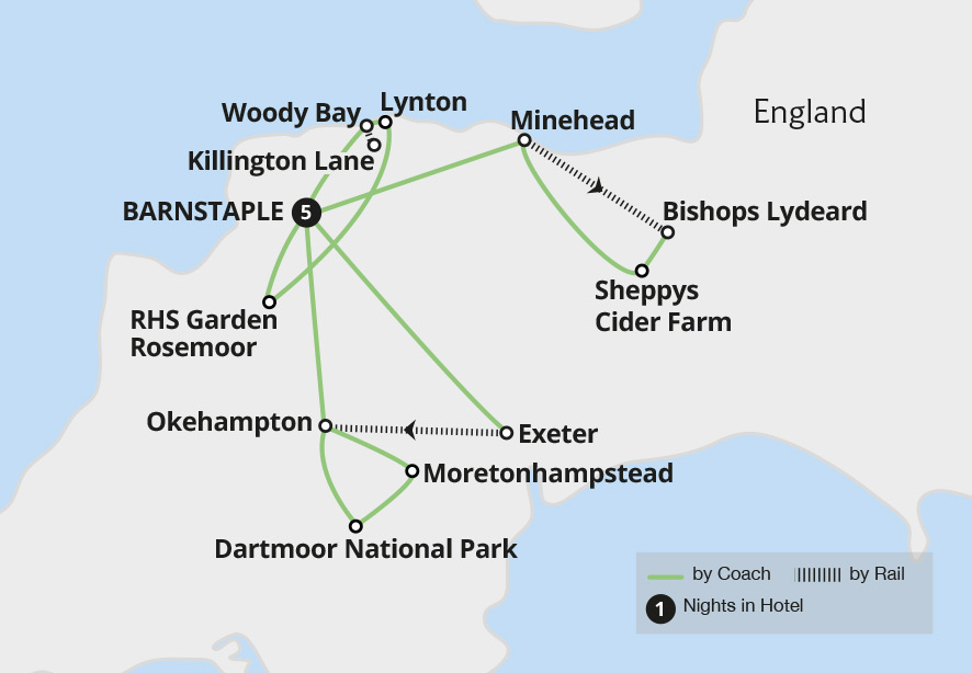 Your holiday begins in Barnstaple, where you arrive independently to our hotel on the banks of the River Taw, meeting the Tour Manager and rest of the group.