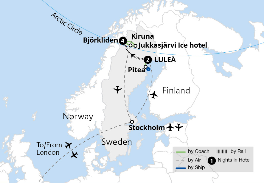 Experience the best of Swedish Lapland, cruising frozen waters, discovering Sámi culture and spotting the Northern Lights on this seven-day arctic adventure